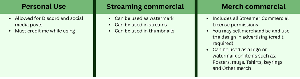 Only Premium Logo comes with streaming commercial rights, which means you are allowed to use it as watermark, streams and thumbnails.